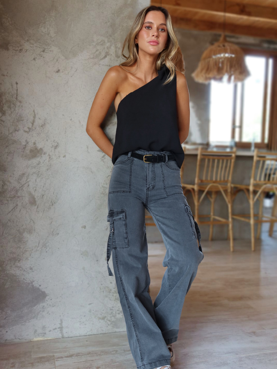 utilitarios como bolsillos cargo, que le otorgan un toque moderno y urbano.